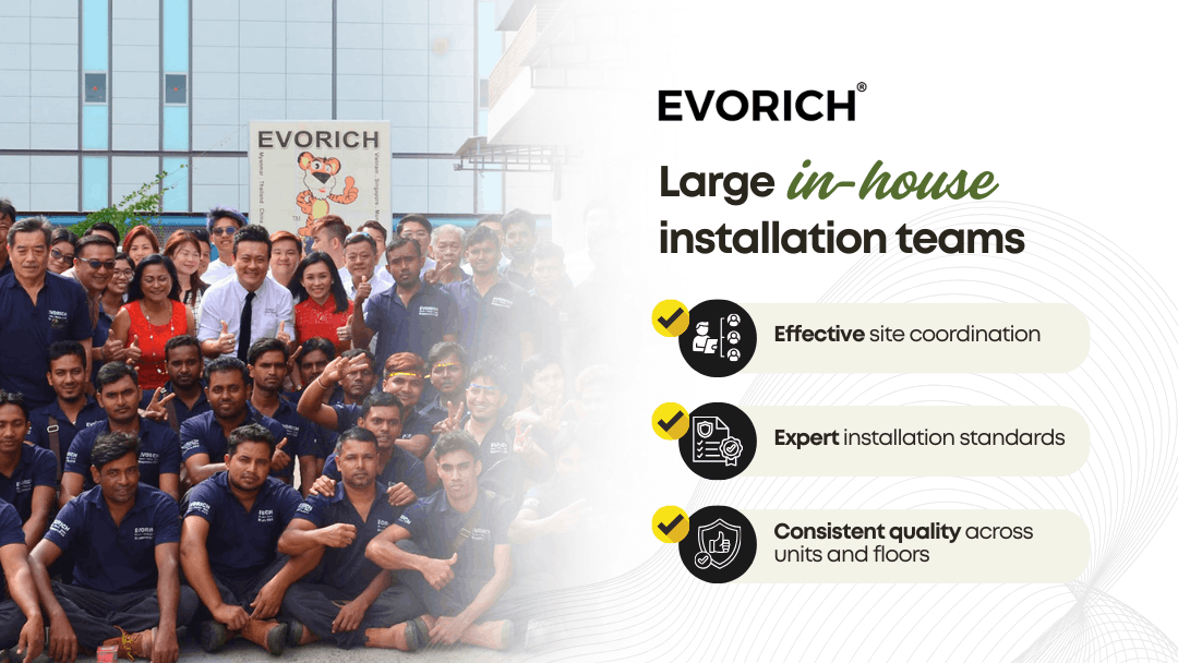 For commercial projects, timelines and workmanship matter. EVORICH operates with large in-house installation teams, ensuring: