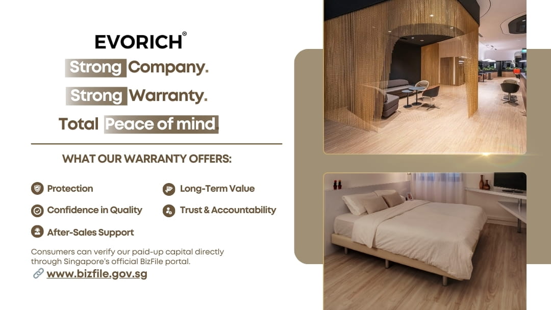 EVORICH is CaseTrust-accredited, a rare distinction among vinyl flooring companies in Singapore.