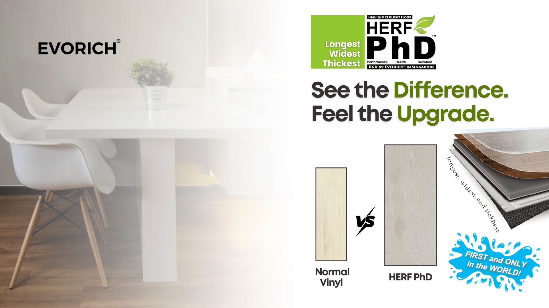 Created to meet the rising lifestyle aspiration of our clients, HERF Herringbone offers the versatility and natural look of the best-selling Evo HERF. Given the unique clicking system of each planks, it allows you to create flooring of diverse patterns.