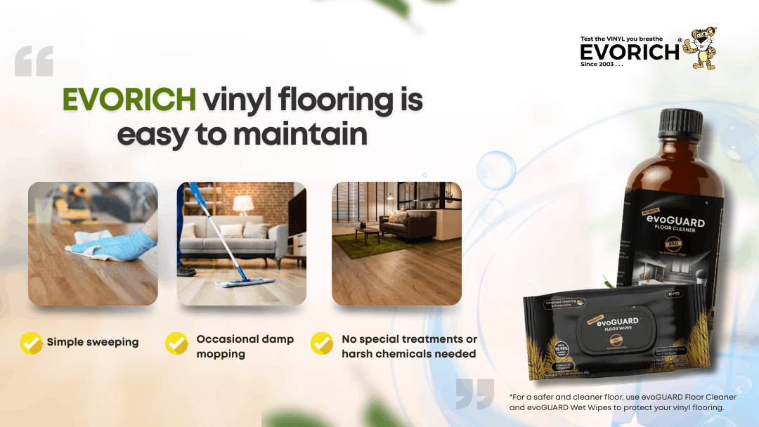 Whether you’re renovating your HDB flat, upgrading your condominium, or refreshing your landed home, EVORICH vinyl flooring offers a safe, stylish, and dependable solution designed for Singapore living.